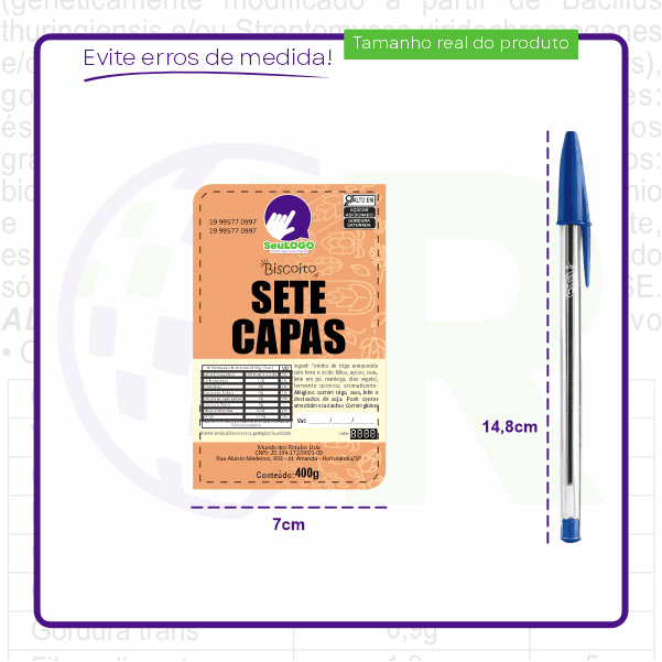 Rótulo para Biscoito 7 Capas (7x11cm) - 2 Cantos Arredondados