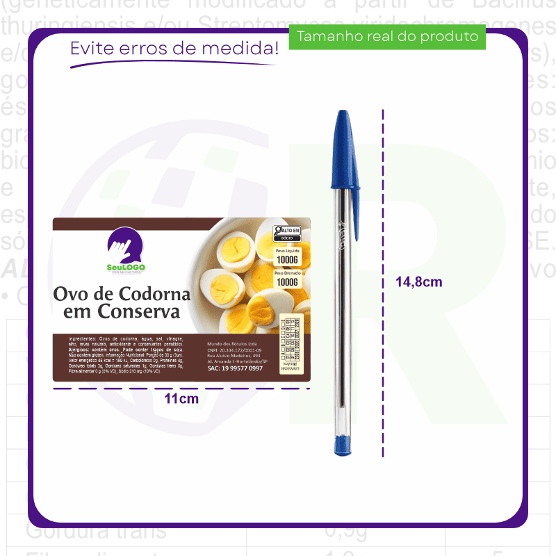 Rótulo para Ovos de Codorna em Conserva (11x7cm) - 4 Cantos Arredondados