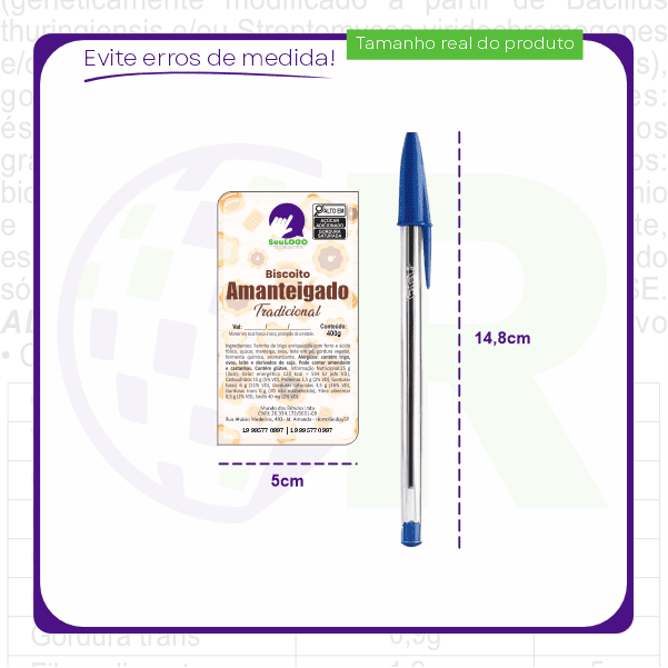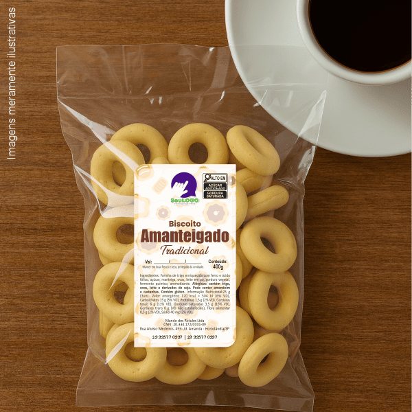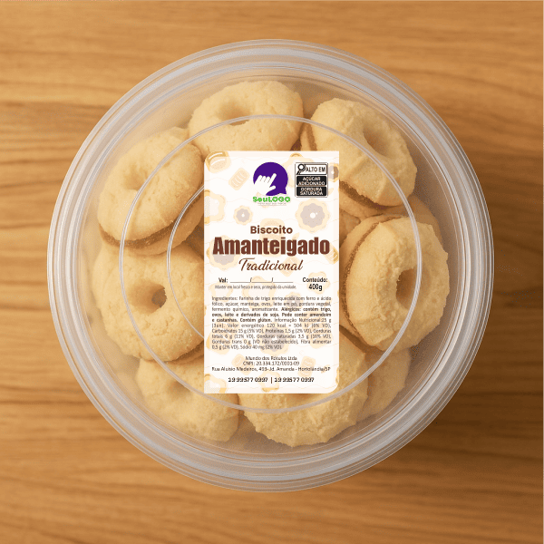 Rótulo para Biscoito Amanteigado (5x9cm) - 2 Cantos Arredondados