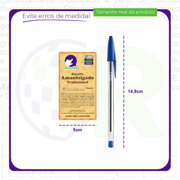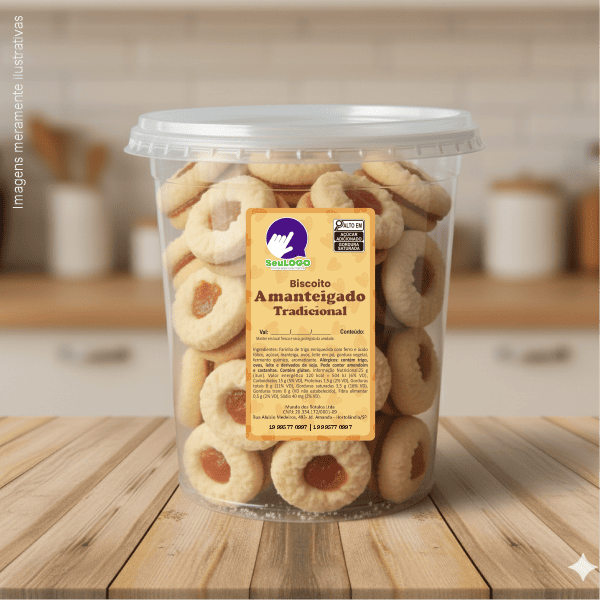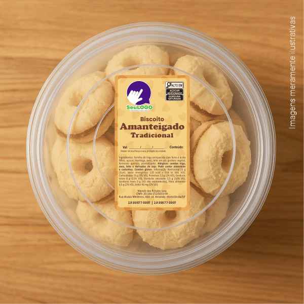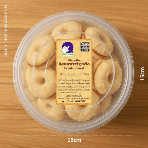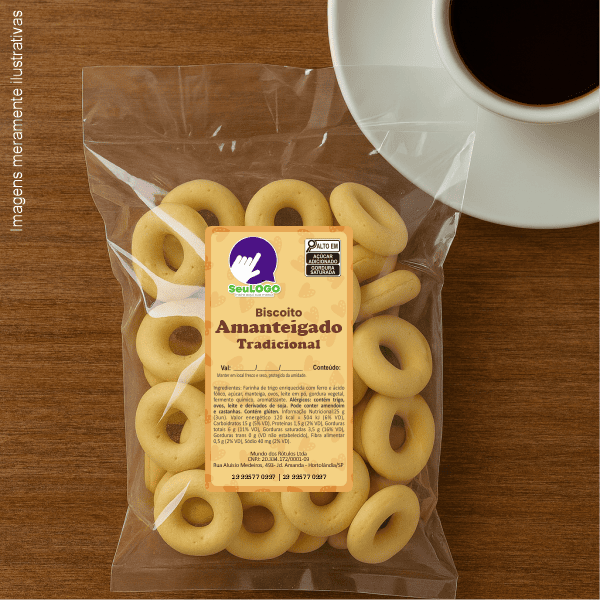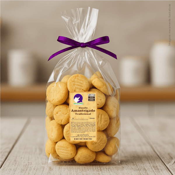 Rótulo para Biscoito Amanteigado (5x9cm) - 4 Cantos Arredondados