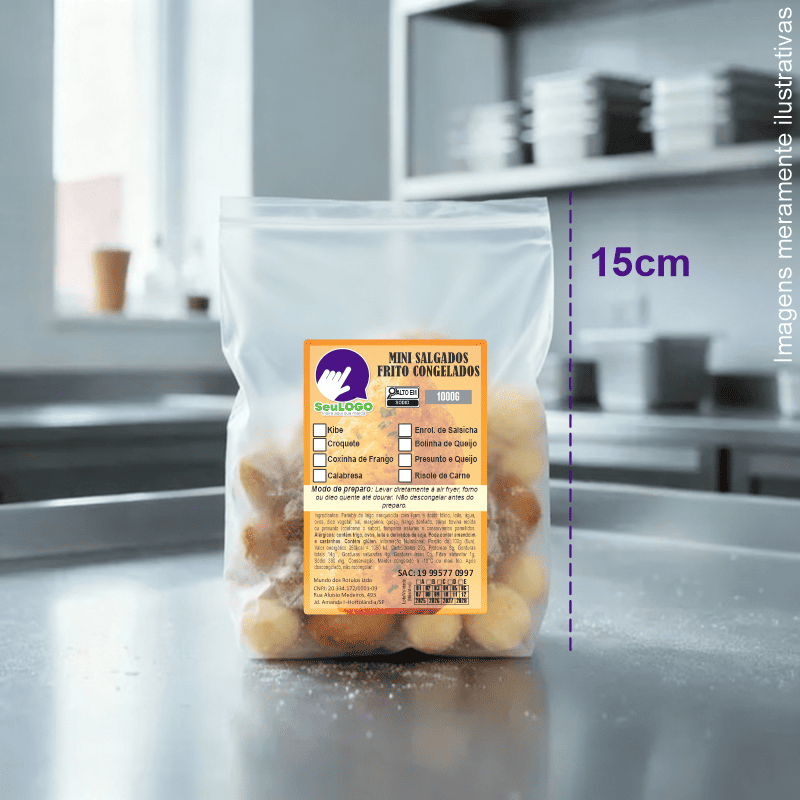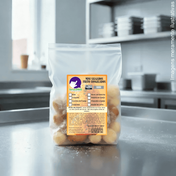 Rótulo para Mini Salgados Fritos (6x9cm)- 4 Cantos Arredondados