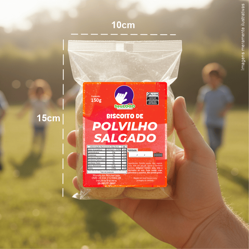 Rótulo para Biscoito Polvilho (8x10cm) - 4 Cantos Arredondados