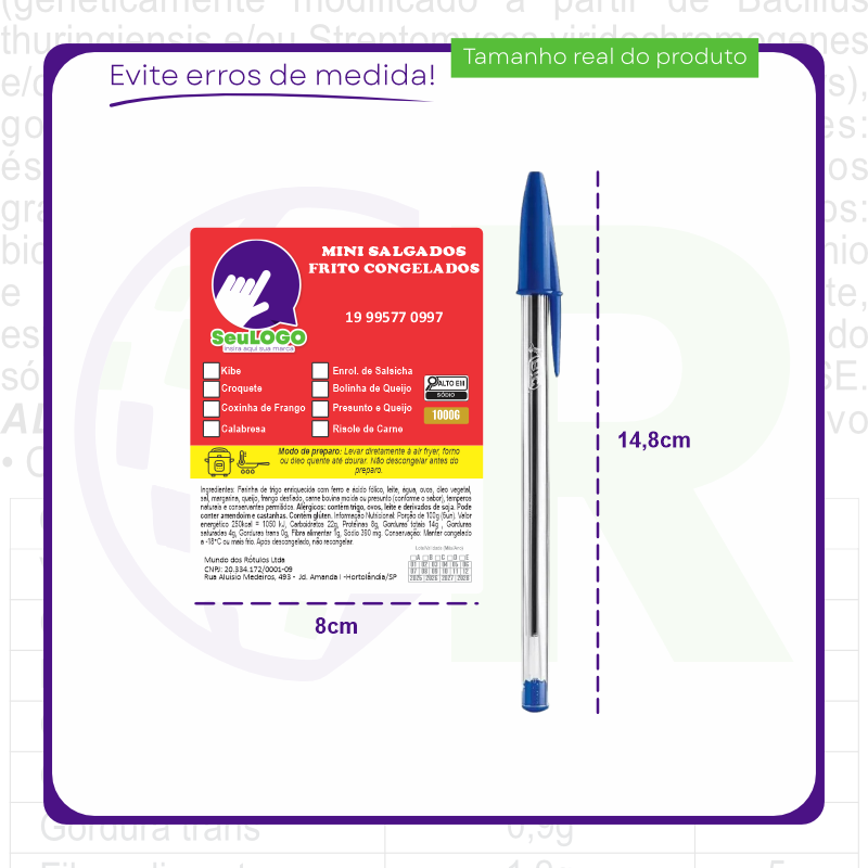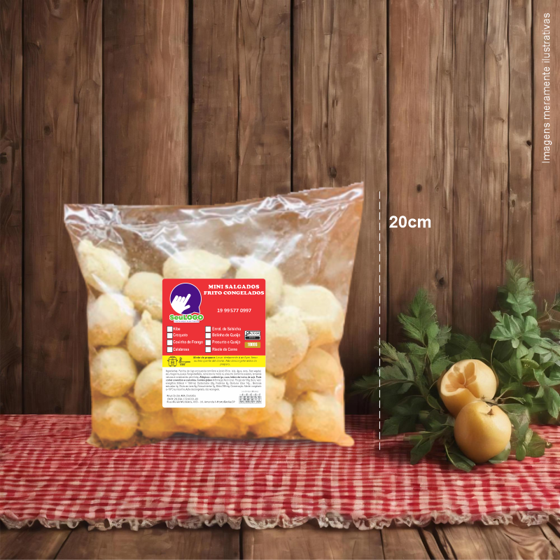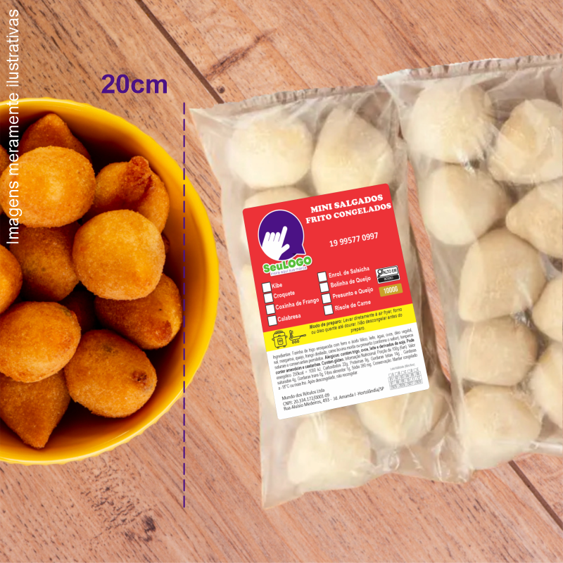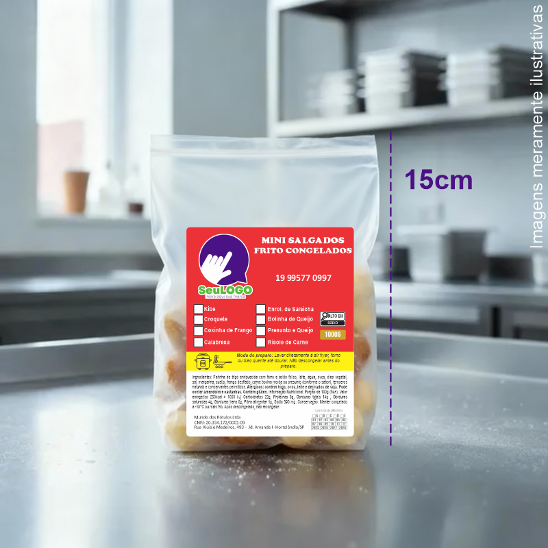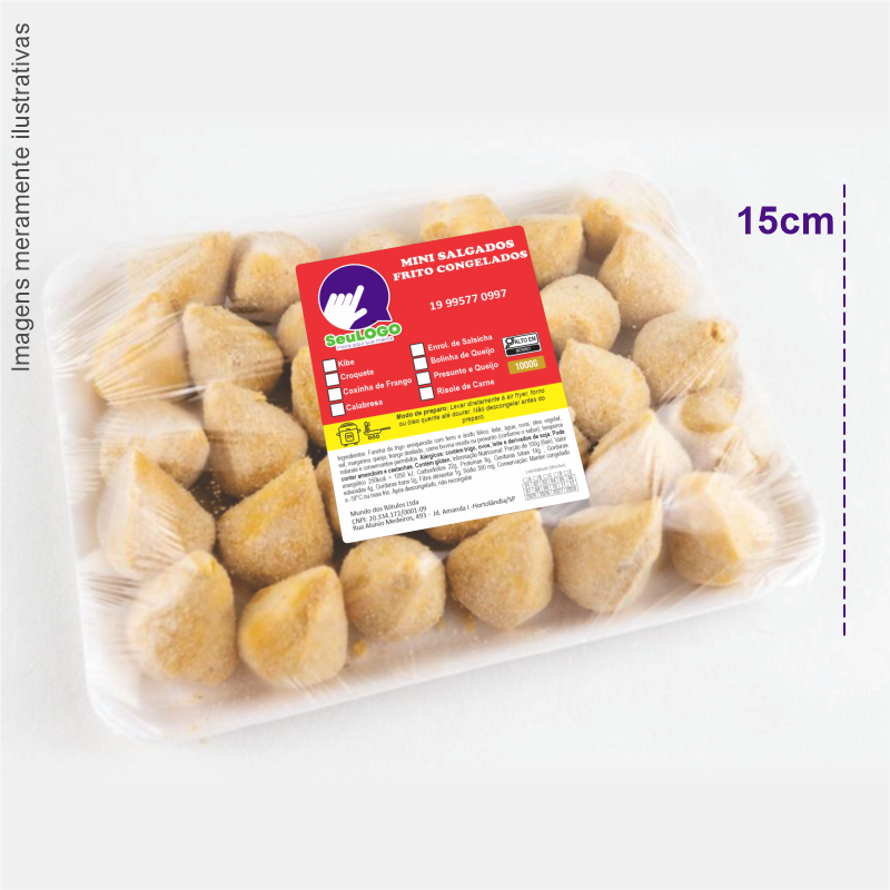 Rótulo para Mini Salgados Fritos (8x10cm) - 4 Cantos Arredondados